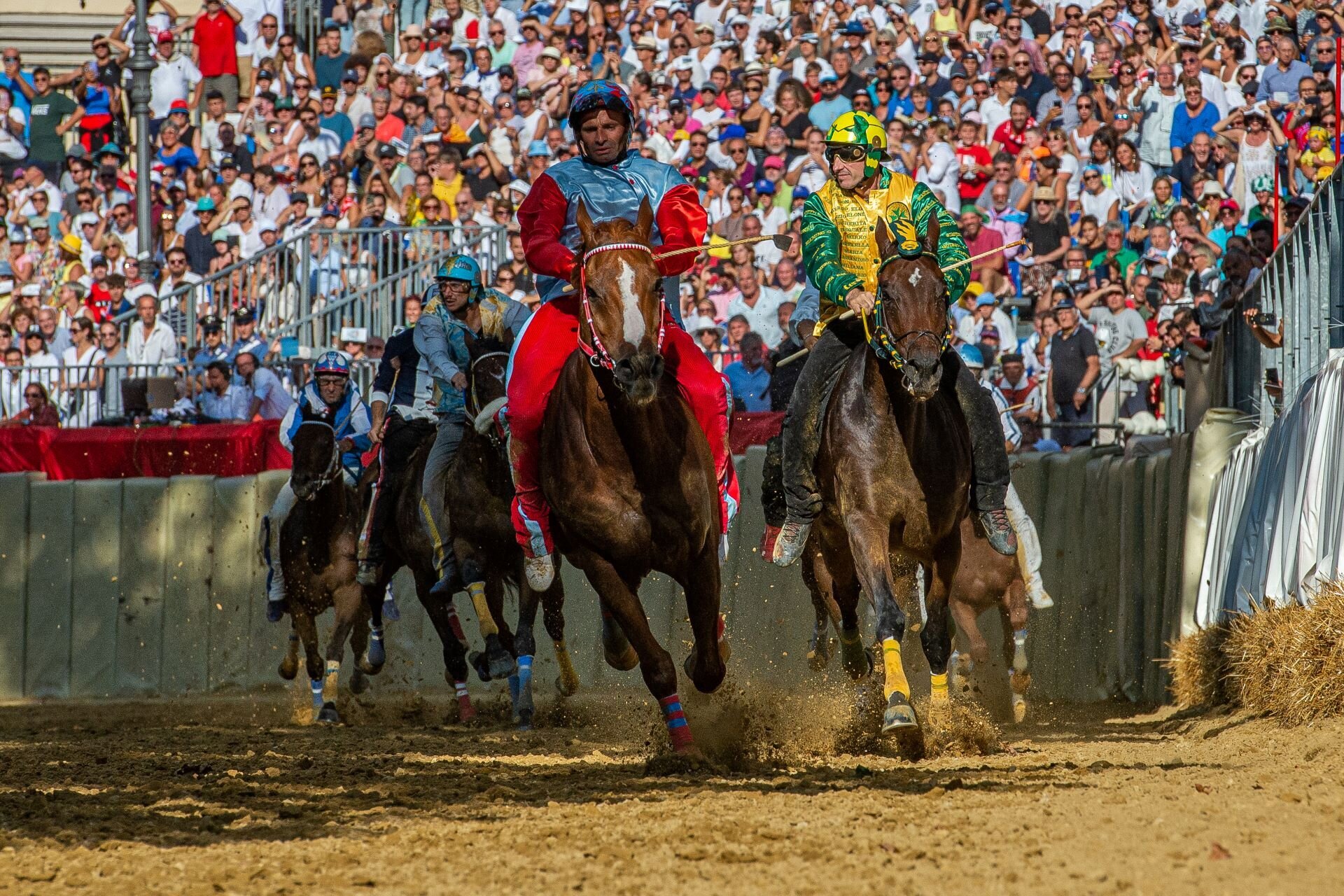 Preceding the race, an enthralling historical procession of over 1200 participants in sumptuous period costumes and a series of important side events, from the propitiatory dinners on the eve of the race to the colorful Palio of the Flag-wavers. A great, adrenaline-filled tradition that will culminate in the exciting race of bareback horses to claim the glory and the coveted Standard, accompanied by the festive blaring of trumpets and the incessant waving of flags and banners, amidst the shouts of cheering crowds.
