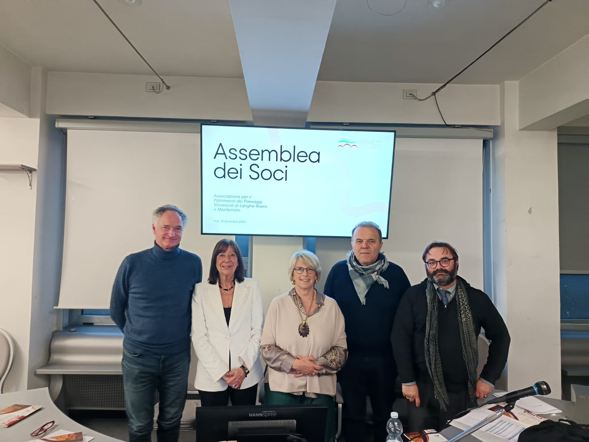Si è svolta nel pomeriggio del 18 dicembre 2025, in Sala Tovo della Provincia di Asti e in collegamento online, l’Assemblea ordinaria dei Soci dell’Associazione per il Patrimonio dei Paesaggi Vitivinicoli di Langhe-Roero e Monferrato. Presenti, oltre ai Soci pubblici e privati, il CdA, la presidente dell’Associazione Giovanna Quaglia e il direttore pro tempore Bruno Bertero.